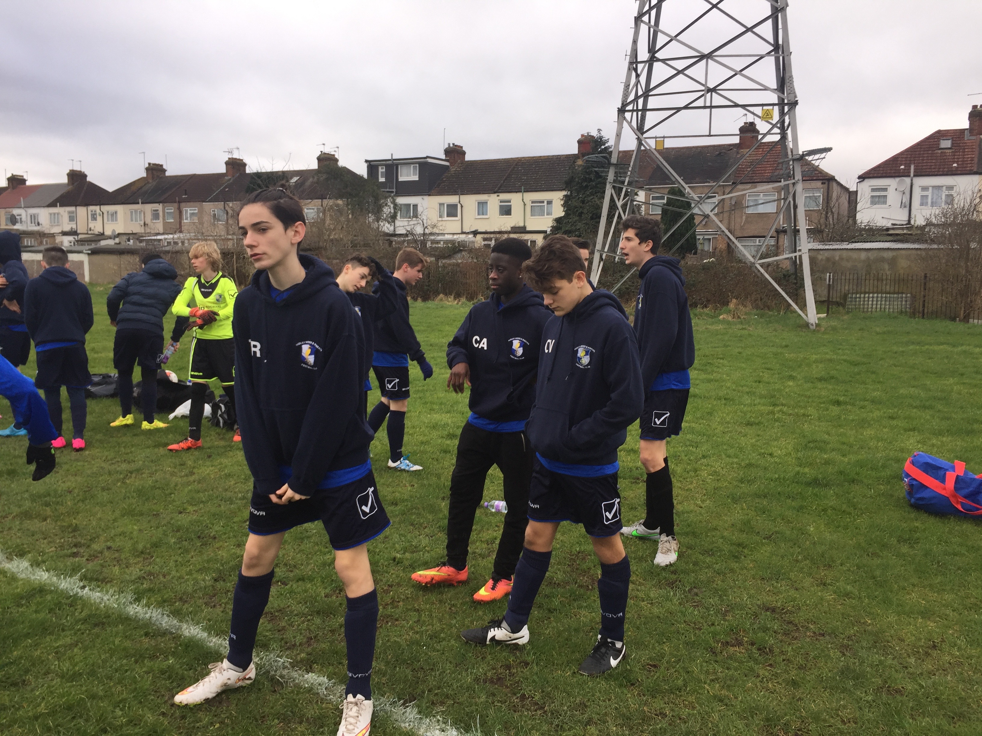 The pitch was probably not the best small, bobbly but at least it was dry. The small pitch i and the strong wind i think effected our game more than theirs. We started slow but assured. Tom got complacent at the back and a clearance fell to their striker who hit a really good shot. However Frankie was alert and made a great diving save to palm the ball away for a corner. The first twenty minutes we had the better possession Joey set up a few chances and Gabe should of scored, but at times we needed to release the ball quicker. The grass was very long and the ball got easily stuck under feet.